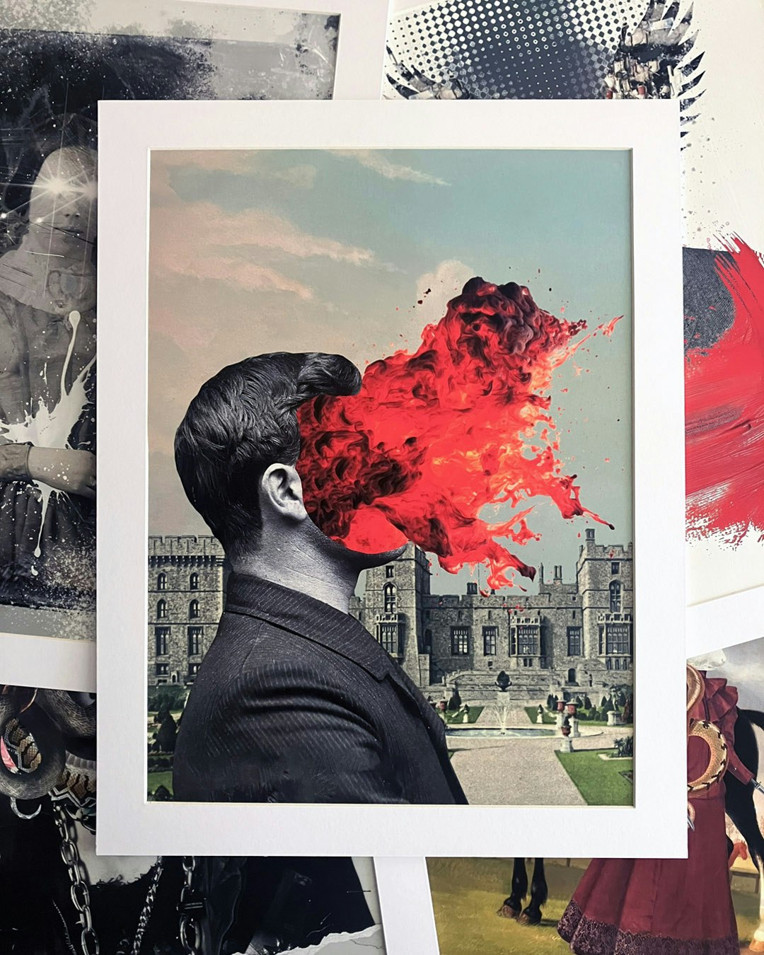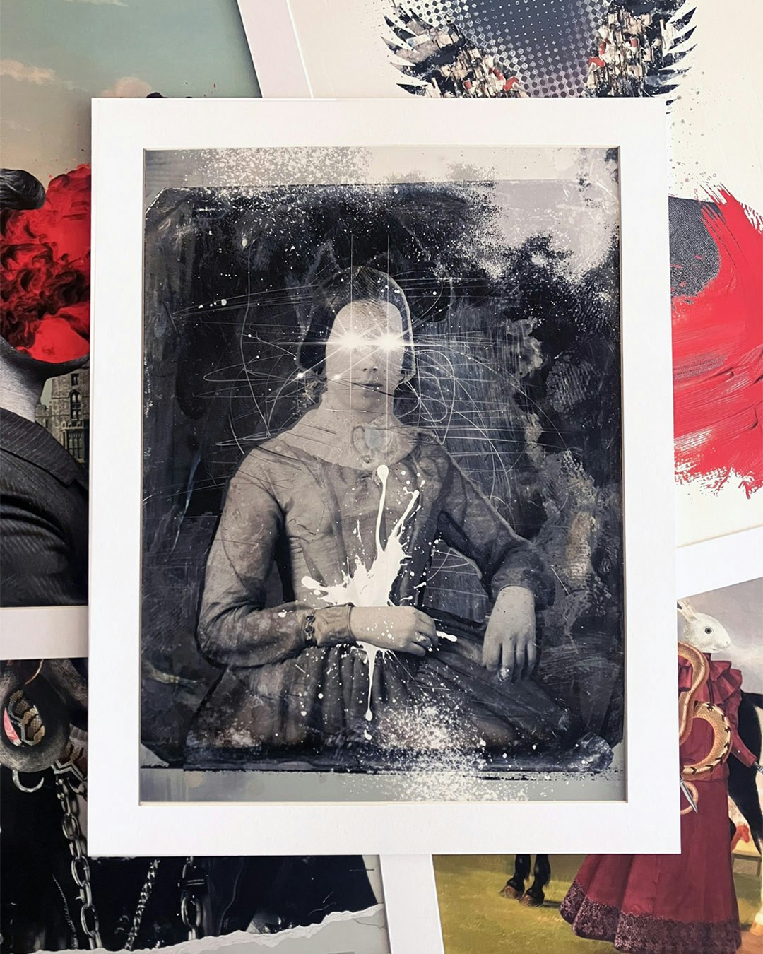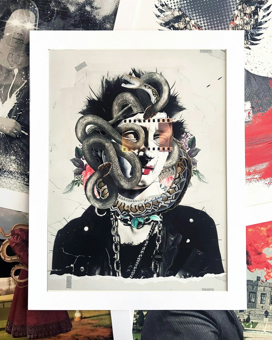 Estos son los 5 collages en impresiones giclée de 29 X 39 cm (+ marialuisa), papel 100% algodón, realizadas en Buro de gráfica digital. Se trata de dos copias firmadas de cada collage, envueltas en bolsa de celofán de 35 X 45 cm para protección. Su precio es de $2,400.00 c/u + envío y están disponibles a través de su collagista de confianza.